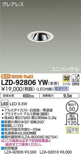 - LZD-92806YW+LZA-92810 本体+位相制御調光用電源 25000