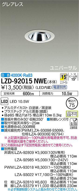 - LZD-92015NWE+LZA-92985 本体+非調光用電源(100-242V) 18500