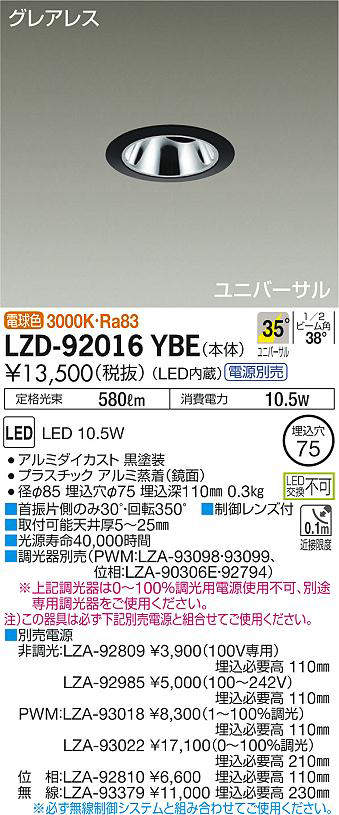 - LZD-92016YBE+LZA-92985 本体+非調光用電源(100-242V) 18500
