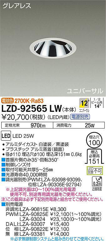 - LZD-92565LW+LZA-93024 本体+0%~100%調光用電源 43800