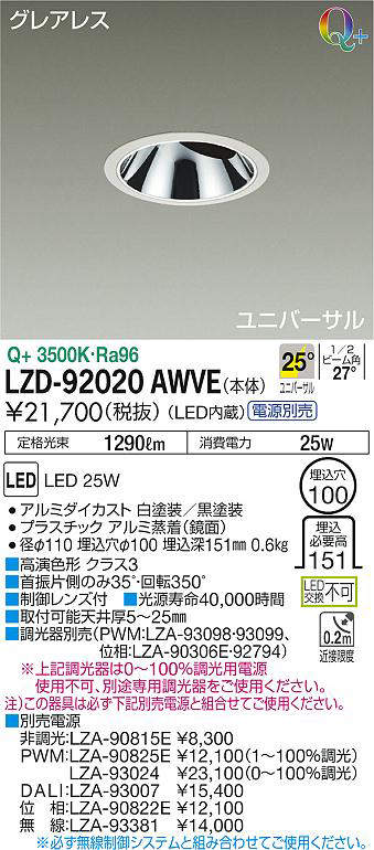 - LZD-92020AWVE+LZA-90825E 本体+PWM信号制御調光用電源 33800