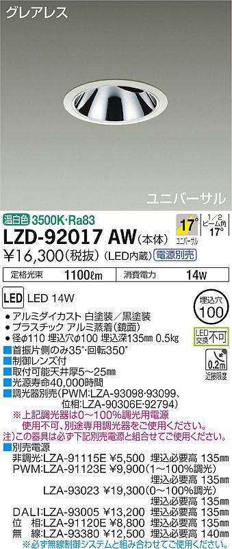 - LZD-92017AW+LZA-93005 本体+DALI 信号制御調光用電源 29500