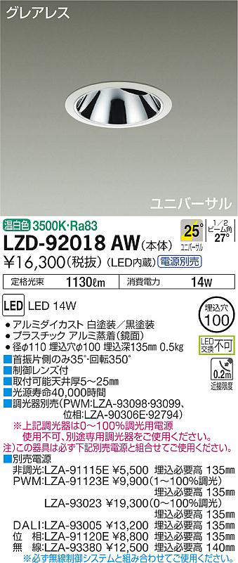 - LZD-92018AW+LZA-93005 本体+DALI 信号制御調光用電源 29500