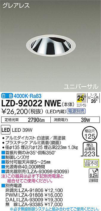 - LZD-92022NWE+LZA-91806 本体+非調光用電源 38300