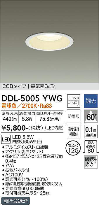 - DDL-5005WWG 昼白色/5000K/Ra83
