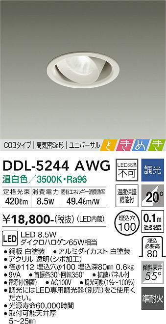 | 掲載カタログ | D.LIGHTING STYLE2020 241頁 D.LIGHTING STYLE2022-2023 185頁 D.LIGHTING STYLE2023 195頁 D.LIGHTING STYLE2024 567頁 ※しずかな調光 22頁 カタログ表示 |