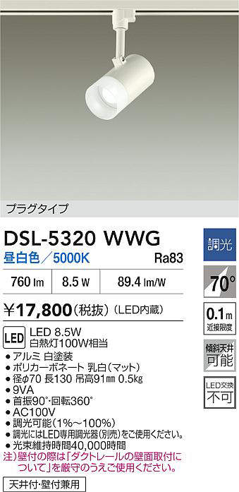 | 器具寸法 | 径φ70 長130 吊高91mm |
