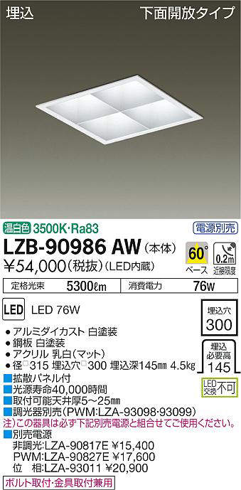 - LZB-90986AW+LZA-90817E 本体+非調光用電源 69400