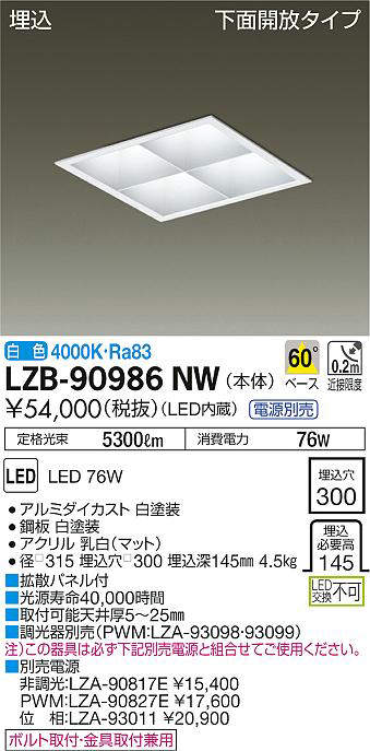 - LZB-90986NW+LZA-90817E 本体+非調光用電源 69400