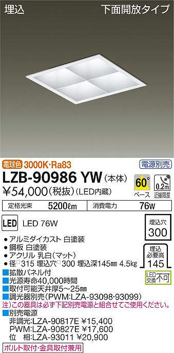 - LZB-90986YW+LZA-90827E 本体+PWM信号制御調光用電源 71600