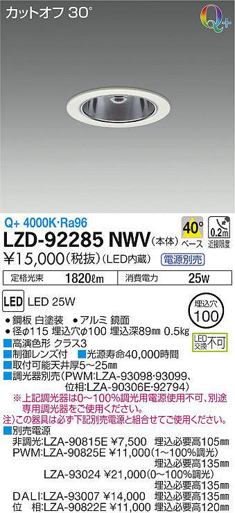 - LZD-92285NWV+LZA-90822E 本体+位相制御調光用電源 26000