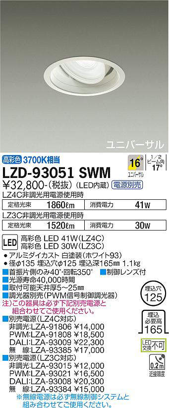 - LZD-93051SWM+LZA-93015 本体+非調光用電源 44800