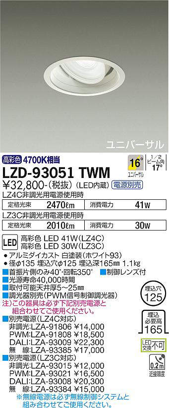 - LZD-93051TWM+LZA-91806 本体+非調光用電源 46800