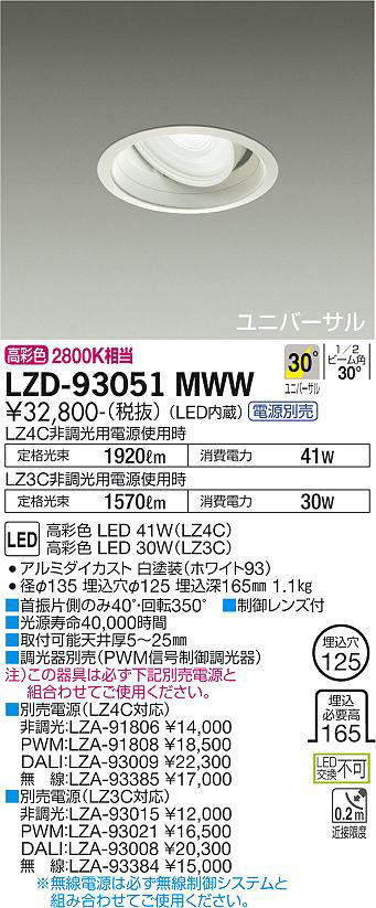 - LZD-93051MWW+LZA-91806 本体+非調光用電源 46800