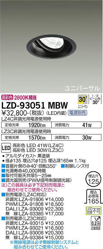 - LZD-93051MBW+LZA-91806 本体+非調光用電源 46800
