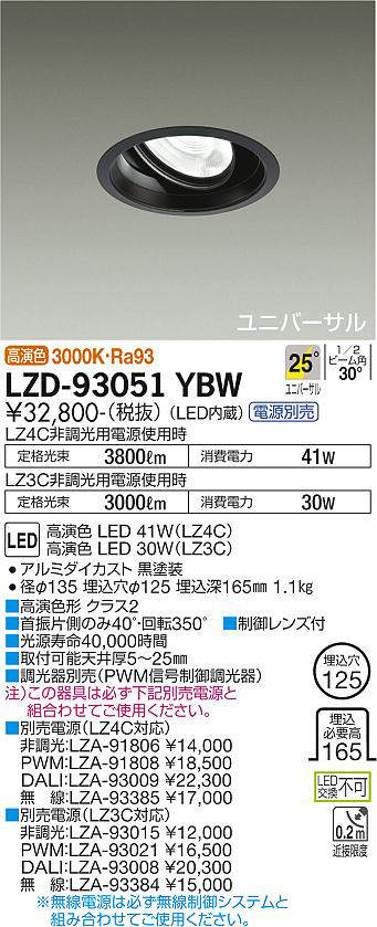 - LZD-93051YBW+LZA-91806 本体+非調光用電源 46800