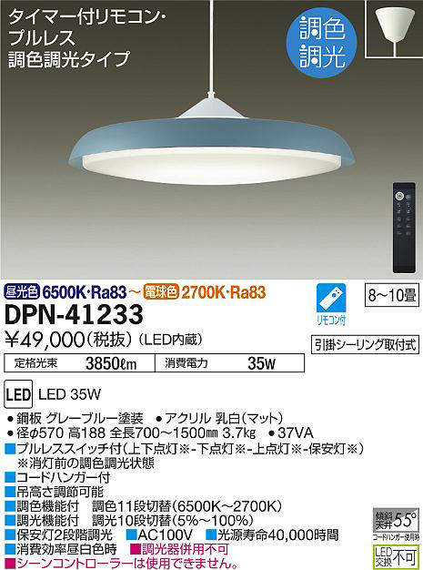 - ■プルレススイッチ付(上下点灯※-下点灯※-上点灯※-保安灯※) ※消灯前の調色調光状態