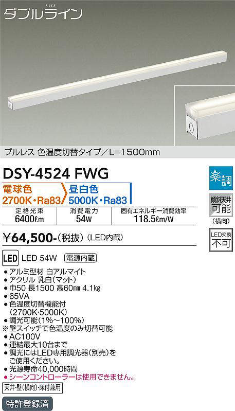 | 調光 / 非調光 | 楽調(2700K・5000K切替)(位相調光|逆位相調光) |