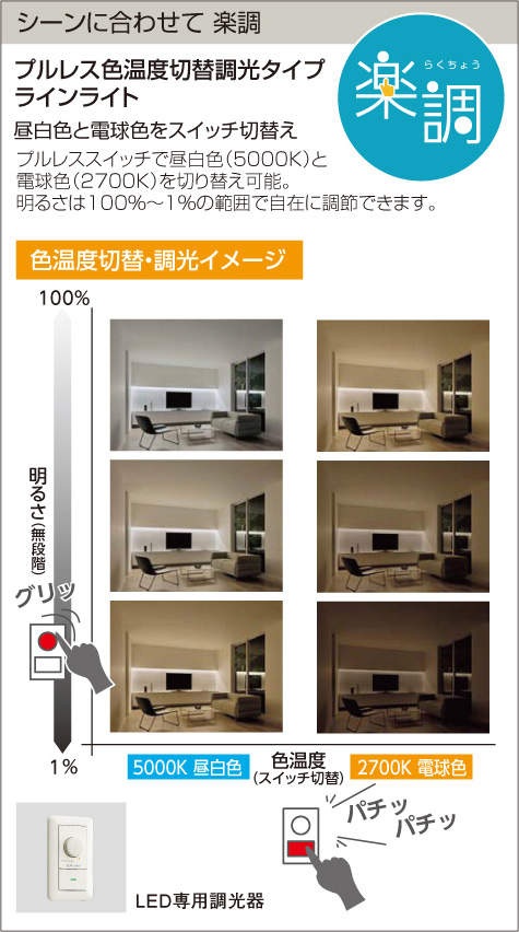 | 調光 / 非調光 | 調光(逆位相調光) |