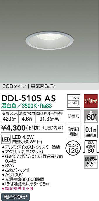 | 器具寸法 | 径φ137 埋込穴φ125 埋込深77mm |