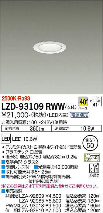 - LZD-93109RWW+LZA-92809 本体+非調光用電源(100V専用) 25500