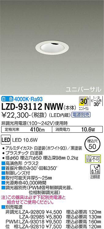 - LZD-93112NWW+LZA-92810 本体+位相制御調光用電源 29800