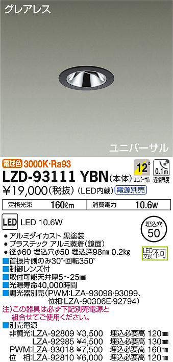 - LZD-93111YBN+LZA-92985 本体+非調光用電源(100-242V) 25900