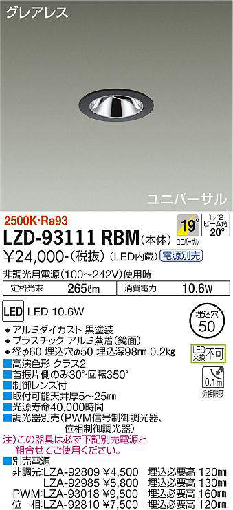 - LZD-93111RBM+LZA-92985 本体+非調光用電源(100-242V) 29800