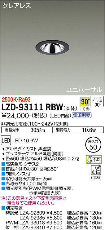- LZD-93111RBW+LZA-92985 本体+非調光用電源(100-242V) 29800