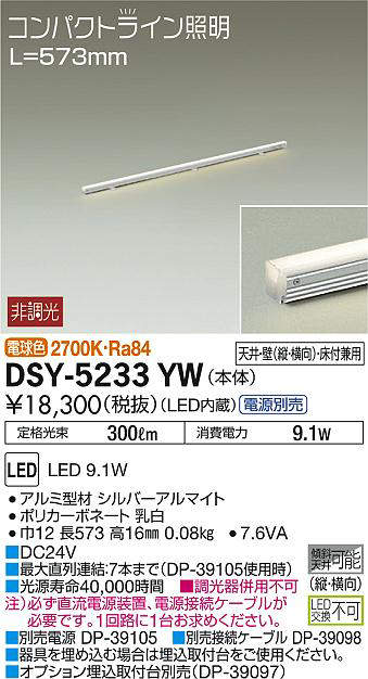 - DSY-5233YW+DP-39105+DP-39098 573mmタイプ 本体+屋内用直流電源装置+電源接続ケーブル 33100