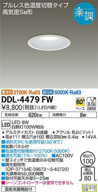 | 調光 / 非調光 | 楽調(2700K・5000K切替)(位相調光) |