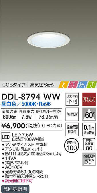 | 器具寸法 | 径φ111 埋込穴φ100 埋込深78mm |