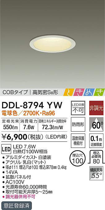 - DDL-8794WW 昼白色/5000K/Ra96