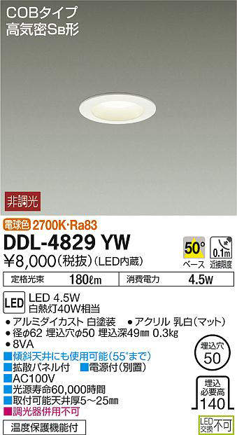 | 器具寸法 | 径φ62 埋込穴φ50 埋込深49mm |