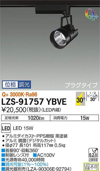 - LZS-91757LBVE 電球色/Q+2700K/Ra96