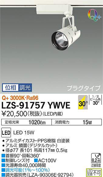 - LZS-91757LWVE 電球色/Q+2700K/Ra96