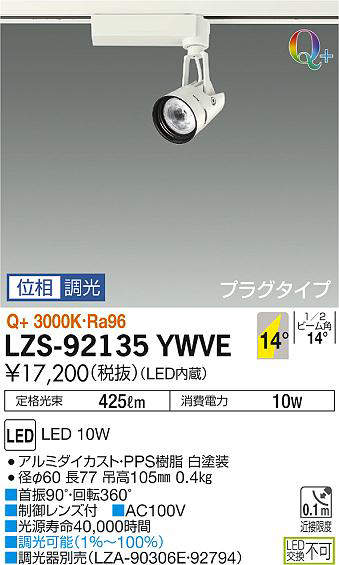 - LZS-92135LWVE 電球色/Q+2700K/Ra96
