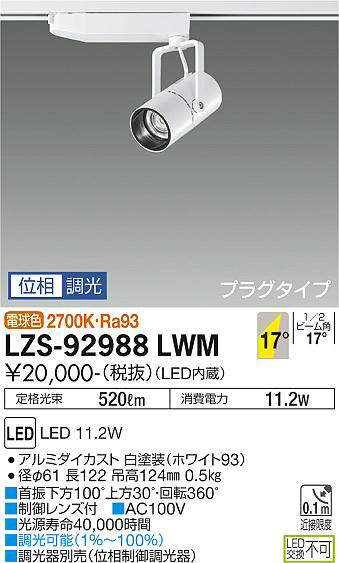 - LZS-92988DWM 白色/Q+4000K/Ra98