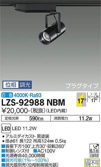 - LZS-92988DBM 白色/Q+4000K/Ra98
