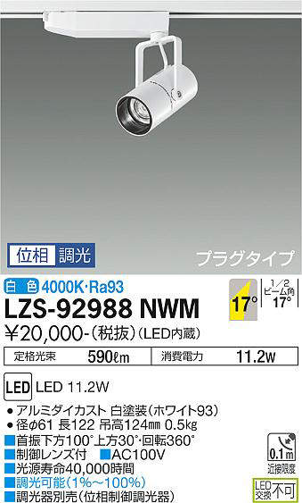 - LZS-92988DWM 白色/Q+4000K/Ra98