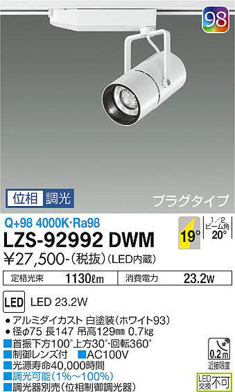 - LZS-92992WWM 昼白色/5000K/Ra93