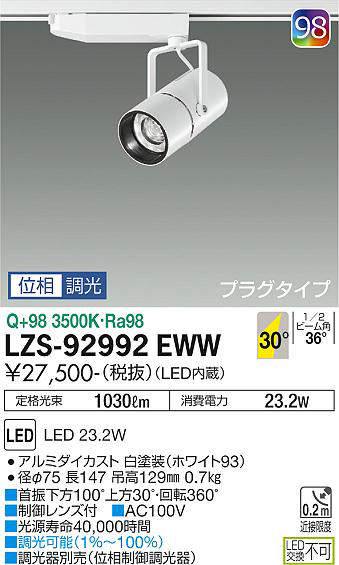 - LZS-92992WWW 昼白色/5000K/Ra93