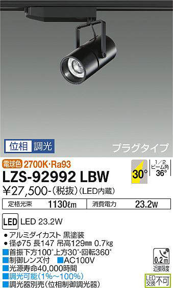 - LZS-92992WBW 昼白色/5000K/Ra93