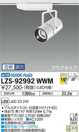 - LZS-92992DWM 白色/Q+4000K/Ra98