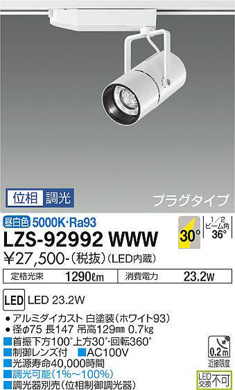 - LZS-92992DWW 白色/Q+4000K/Ra98