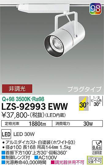 - LZS-92993WWW 昼白色/5000K/Ra93