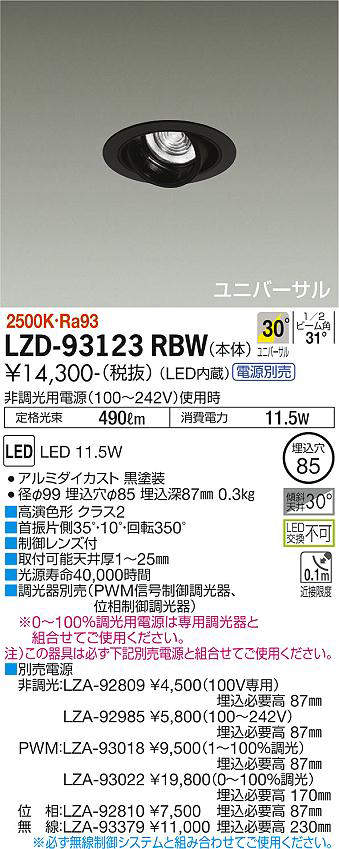 - LZD-93123RBW+LZA-92985 本体+非調光用電源(100-242V) 20100