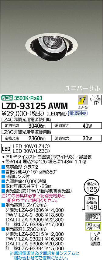 - LZD-93125AWM+LZA-93015 本体+非調光用電源 41000