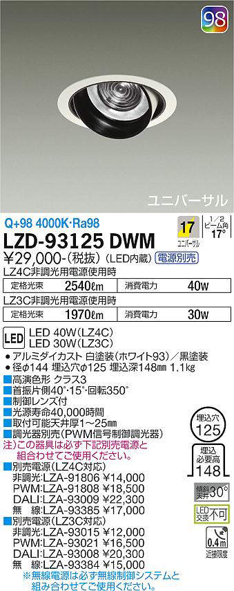 - LZD-93125WWM 昼白色/5000K/Ra93