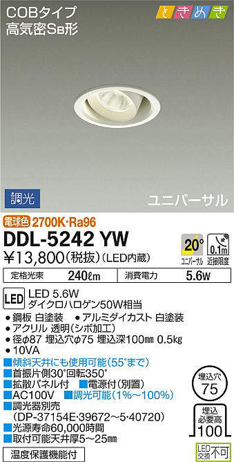 | 器具寸法 | 径φ87 埋込穴φ75 埋込深100mm |